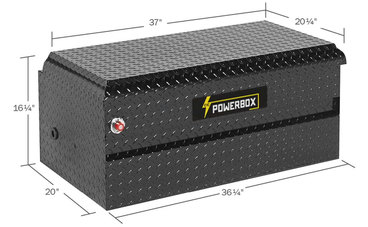 Imagine an AIR COMPRESSOR, a GENERATOR, and a heavy-duty JUMP START system with you at all times in the convenience of your toolbox. With the press of a button, you have access to electric power, airpower, and jump-start capability. The Chest Model is a perfect solution for customers who need something low profile. The Chest works great with Tonneau Covers and Truck Toppers as the Chest mounts below the bed rail. Measuring at 47 inches wide, the Chest fits perfectly into Utility Trucks and Vans. Our patented smart connect re-charging technology automatically connects to any 12v vehicle when your vehicle is running to start charging and automatically disconnects when you turn off your vehicle. Rundown your Powerbox battery? Start your vehicle. Rundown your vehicle battery? Press the “Self Jump-Start” button to automatically back-fed the stored power from your Powerbox to your vehicle for an instant jump-start. This unit features a 25′ retractable air hose, 30′ retractable AC cord reel, a 6 outlet power strip, 2 weather-resistant external AC outlets, a universal air coupler, and an external Anderson® connector jump-start port. With the press of a button, you can run Grinders, Impacts, Nail Guns, Circle Saws, and Chainsaws on the job site, in the pasture, in the woods, or in any remote location, while still having room to securely store your tools. Change the way you get the job done, with the CIC Powerbox® Chest model.